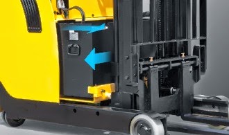 Ắc quy có thể tháo rời khỏi xe chỉ trong một phút chỉ với 2 thao tác: Kéo ra và đẩy sang phải/trái.
